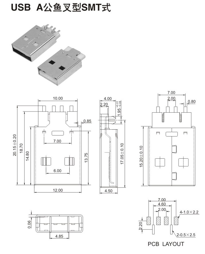 USB A公魚叉型SMT式