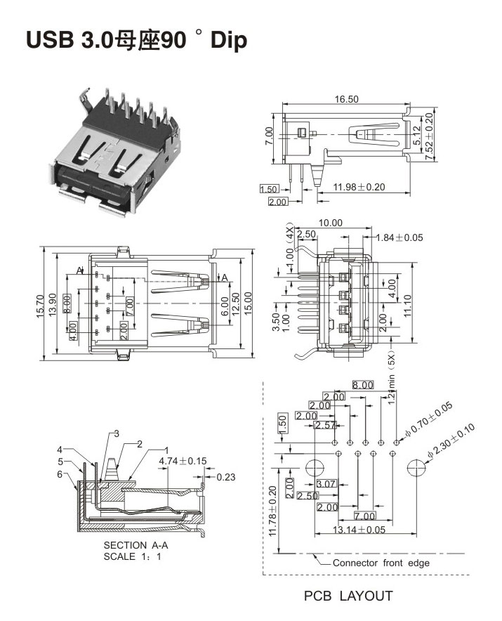 USB 3.0母座90° Dip