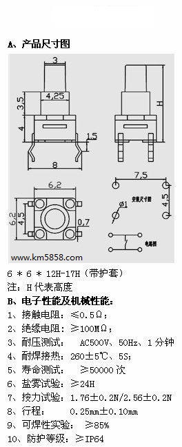 防水輕觸開(kāi)關(guān)KM66H