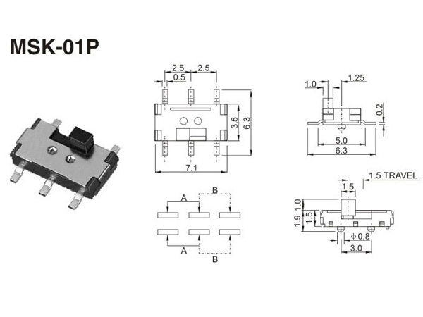 小撥動開關MSK-01P.產品廣泛應用于計算機周邊、多媒體音響、家電儀器、電子玩具、視聽設備、通訊設備等。